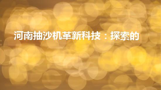 河南抽沙機革新科技:探索的未來?